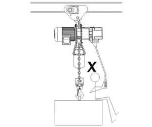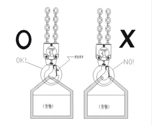 1、勿以吊钩末端吊物应挂入安全舌片内以策安全如下图: